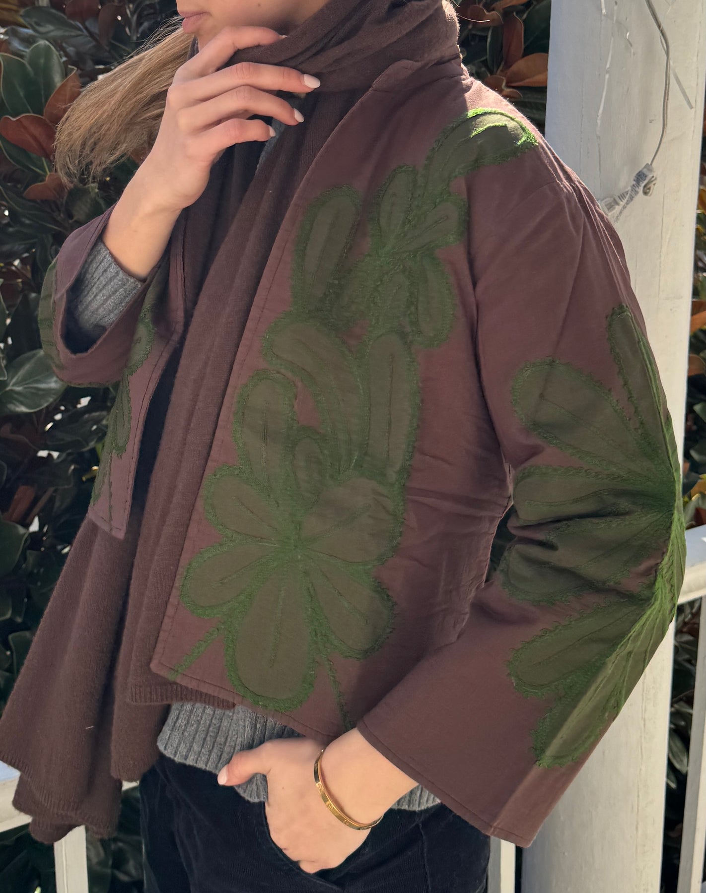 The waist length jacket is perfect for in between seasons with fluctuating temperatures. 100% cotton