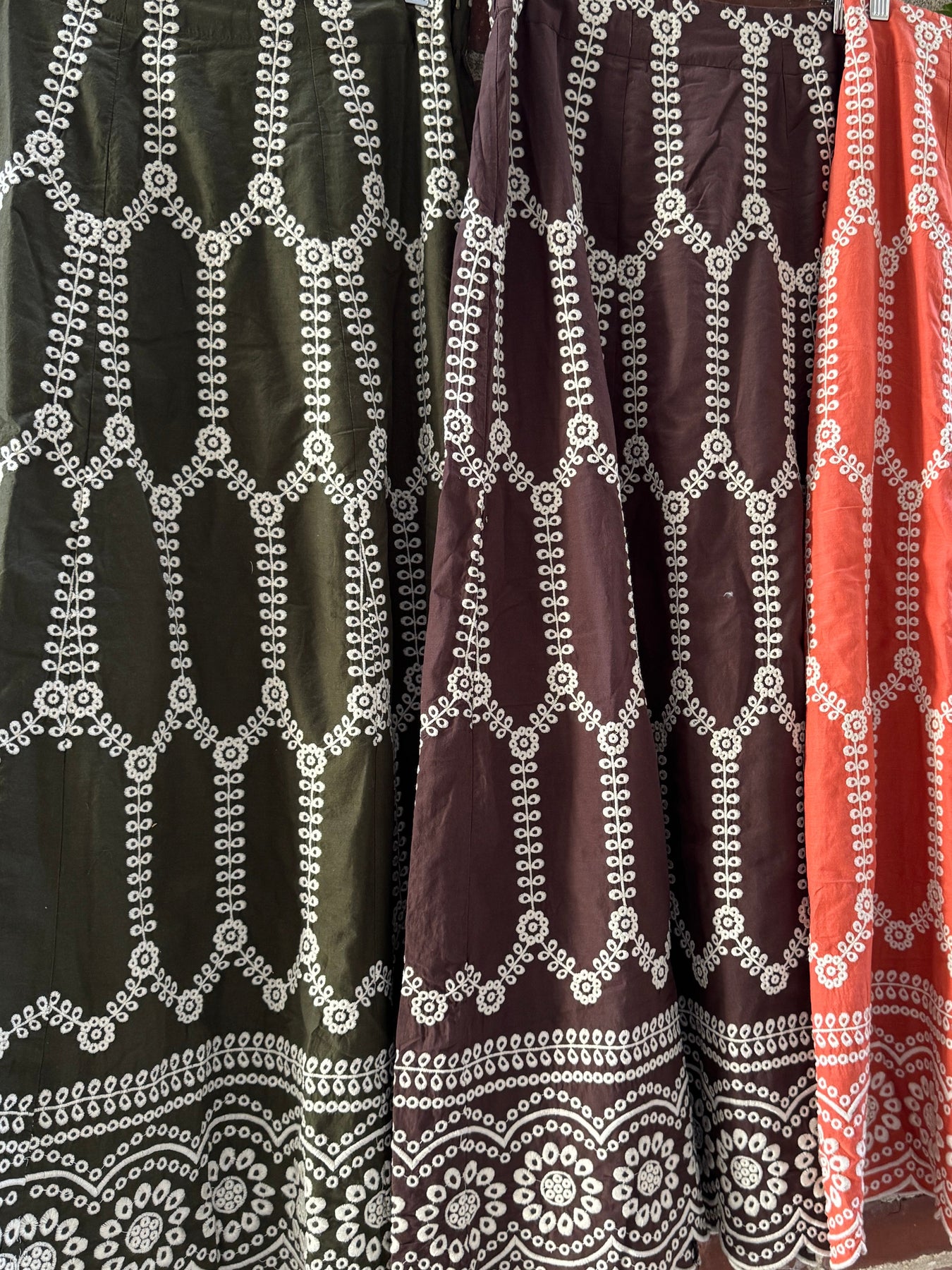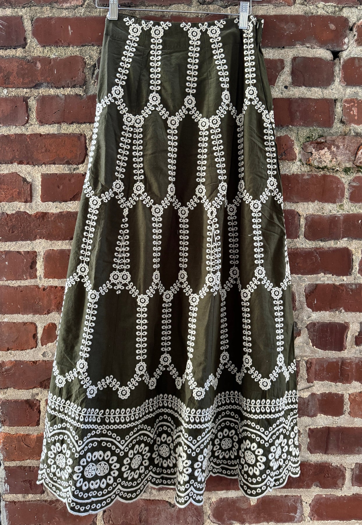 The most flattering skirt you'll ever own. Very slimming. Inconspicuous elastic in the back with a side zipper. Wear with sandals in the summer and boots in the fall and winter.