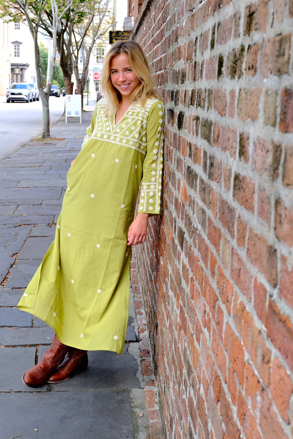 The Molly Maxi Dress evolved from our very first shirt, the Molly. We decided to make it into a maxi dress due to the demand for long, breezy dresses. Elevated with hand embroidery this dress can go from day to evening in a flash.The detailed embroidery makes this dress a must have for your next vacation.