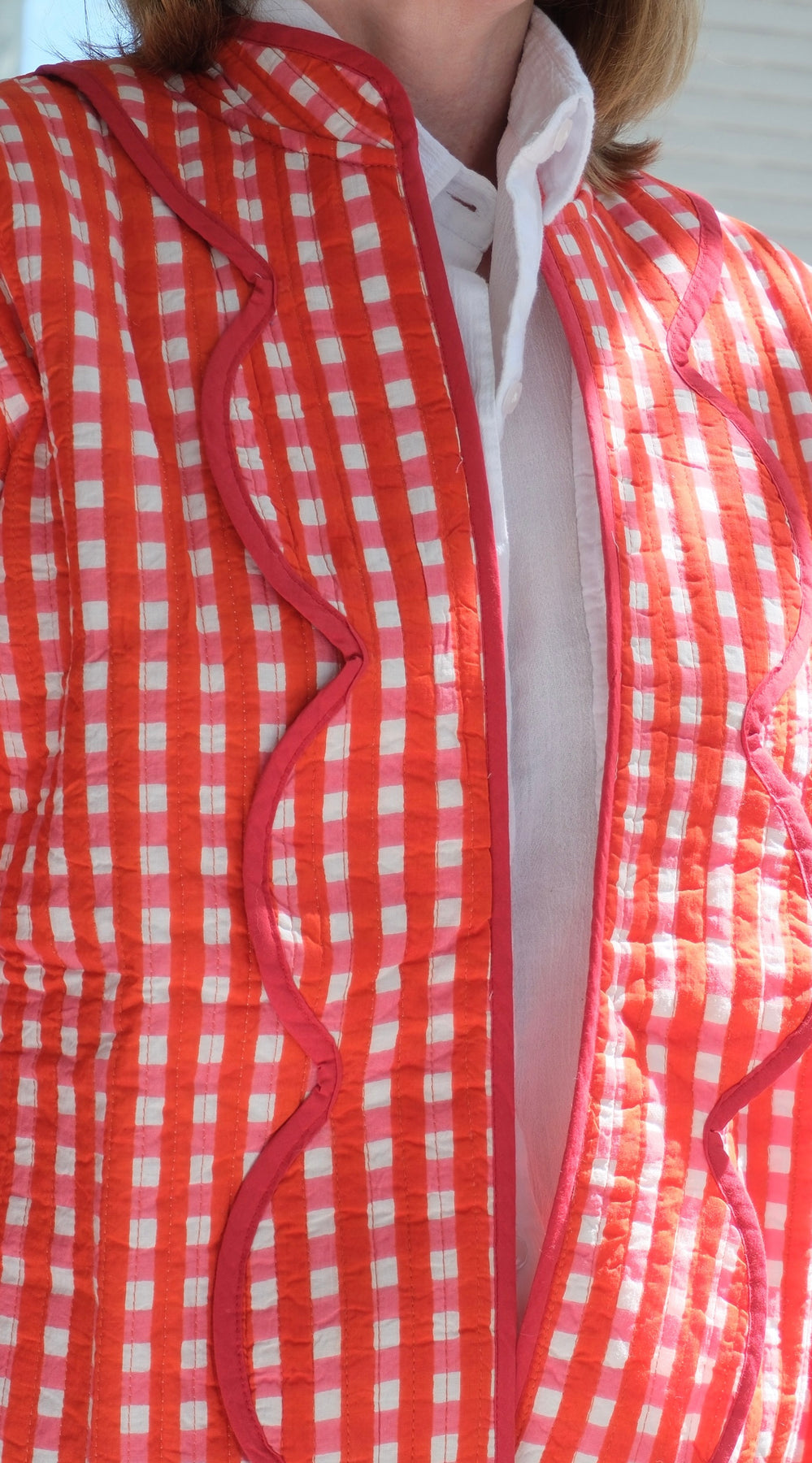 The waist length light weight quilted jacket is perfect for in between seasons with fluctuating temperatures. 100% cotton