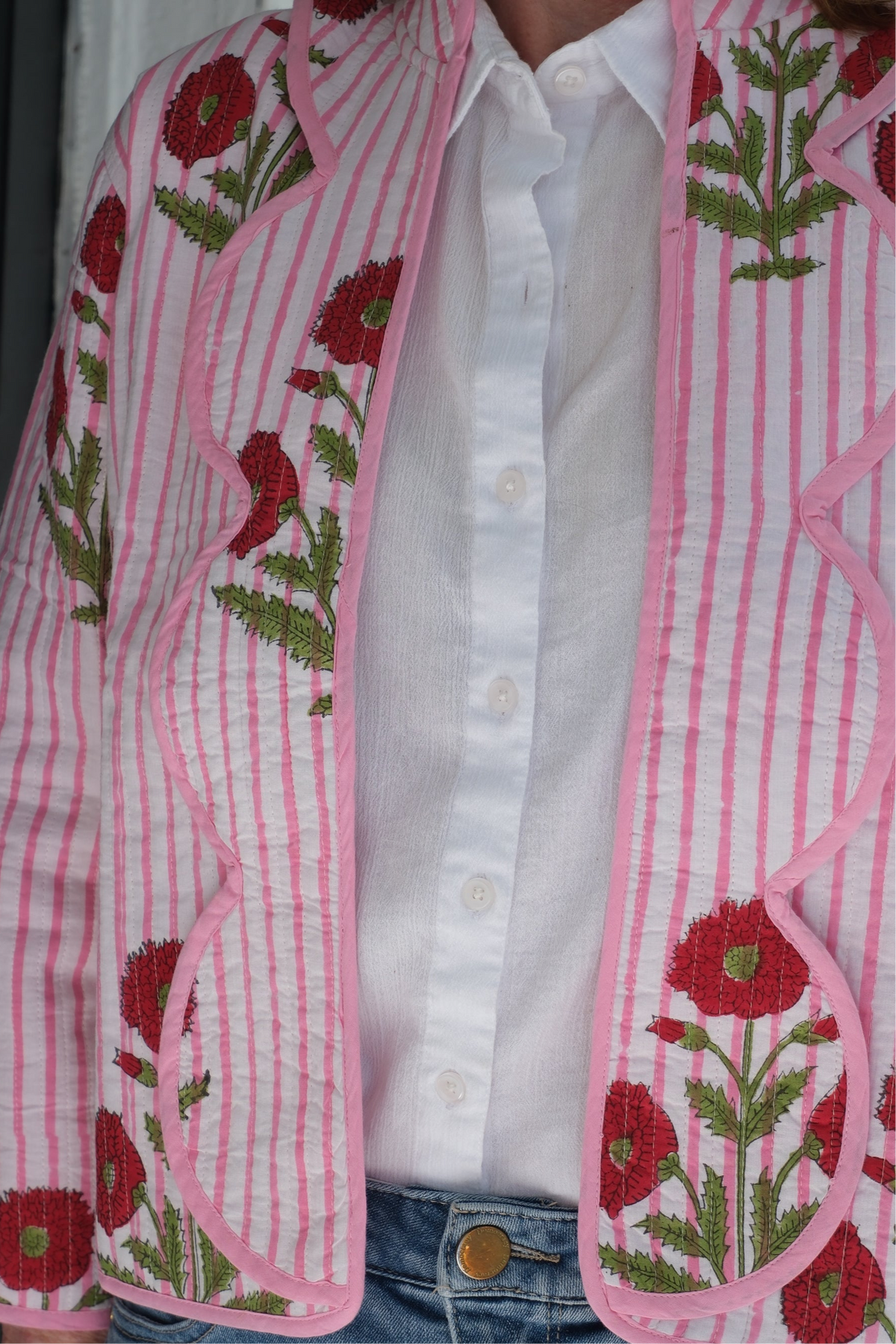Quilted Jacket Pink Stripe Milos with Scallops