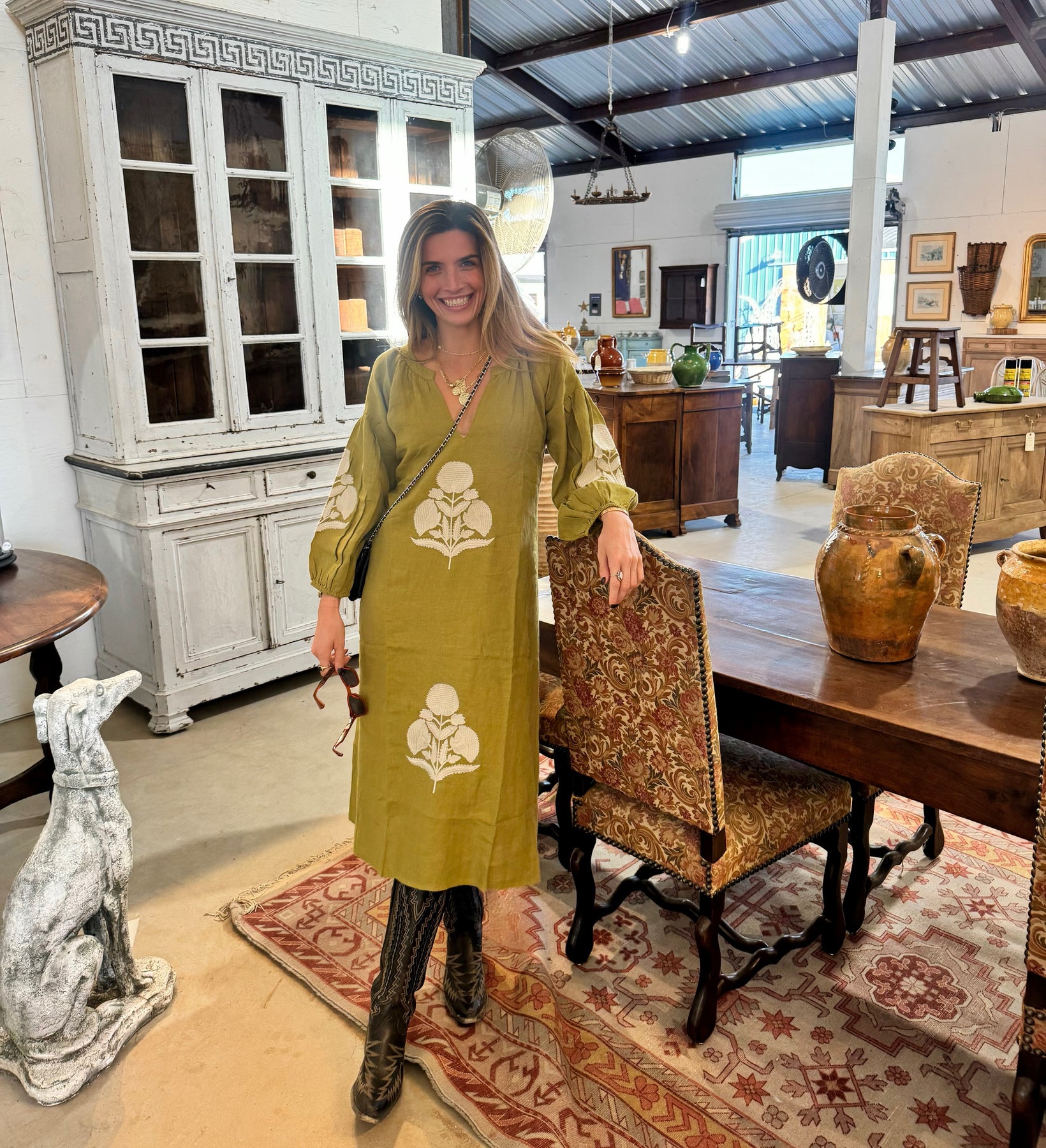 Sullivan Midi Dress Bay Leaf/Sand Milos Linen Embroidery