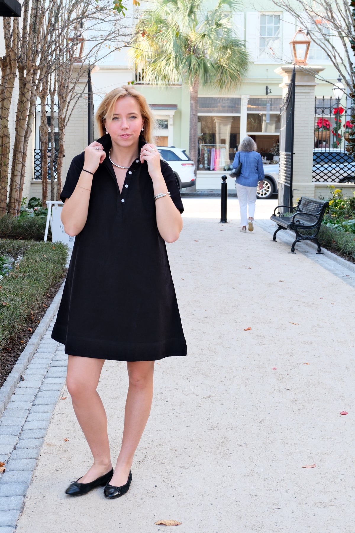This swing dress features a crisp collar and a fitted bodice that flatters your shape before flaring into a breezy, swingy hem. Effortlessly chic and easy to move in, it’s the kind of dress that works just as well with sneakers for daytime errands as it does with boots or heels for a night out.